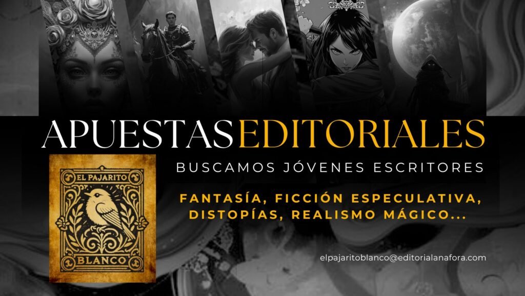 En un tiempo en el que las historias pueden cambiarlo todo, El Pajarito Blanco alza el vuelo como una línea editorial dedicada exclusivamente a los nuevos narradores de nuestro tiempo: jóvenes creadores con algo que decir y una forma única de contarlo. Buscamos autores entre 18 y 30 años que escriban desde el alma, con fuerza, con mirada propia. Historias Young Adult que exploren el amor, la identidad, la rebeldía, la pérdida, el miedo, la esperanza. Ficción especulativa, fantasía, ciencia ficción, distopías, realismo mágico, paranormal, aventuras, romance, clásicos juveniles, novela histórica o contemporánea… Todo género es bienvenido si hay verdad, talento y una voz que se haga oír. Sabemos que las nuevas generaciones están escribiendo el futuro. Por eso queremos leerte. Pero no todo entra: somos exigentes, cuidamos cada detalle y elegimos solo las obras que brillan con luz propia. El Pajarito Blanco no es solo una colección, es una apuesta. Una oportunidad real para quienes están empezando, pero quieren llegar lejos. ¿Estás listo para abrir tus alas? Haz clic en la foto y síguenos en las redes sociales.